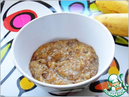 Два спелых, среднего размера, банана ( можно и переспелых) измельчаем в пюре. Я обычно делаю это с помощью мелкой терки. Нам понадобится 2/3 стакана бананового пюре.