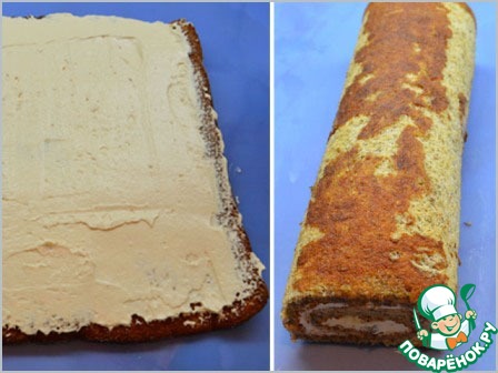 Для удобства нанесения крема и сворачивания рулета, можно его поставить на время в холодильник.