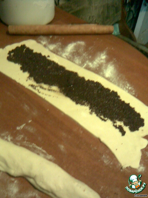 На вторую - маковую, скрутить рулетом.