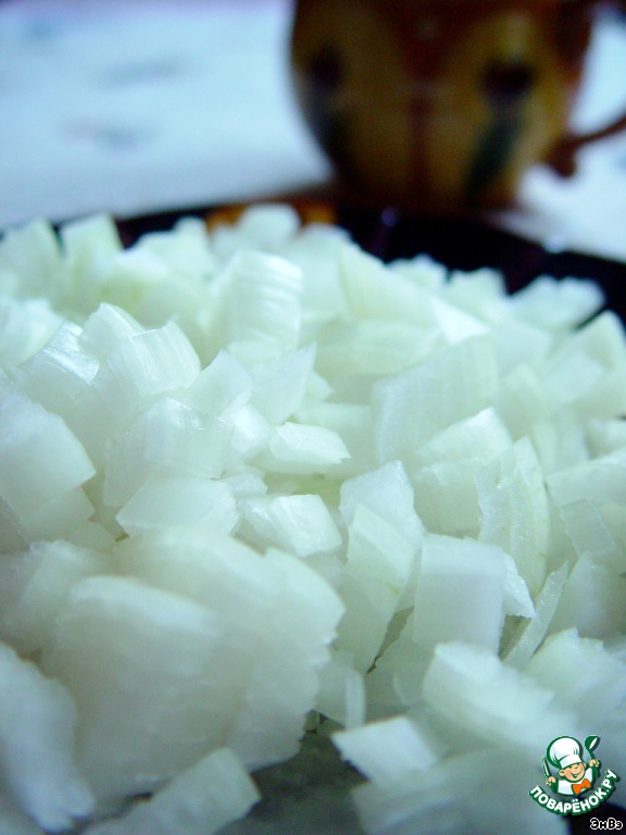 Потом сбегал в кладовую и принес две головки лука. И его мелко нарезал