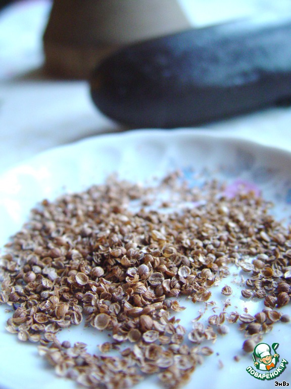 Растер в ступке кориандровых семян, но не в пыль, а так, чтобы чувствовались, их он давно втихаря в кладовой отсыпал