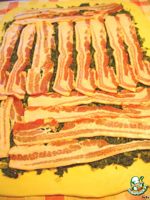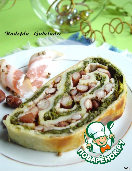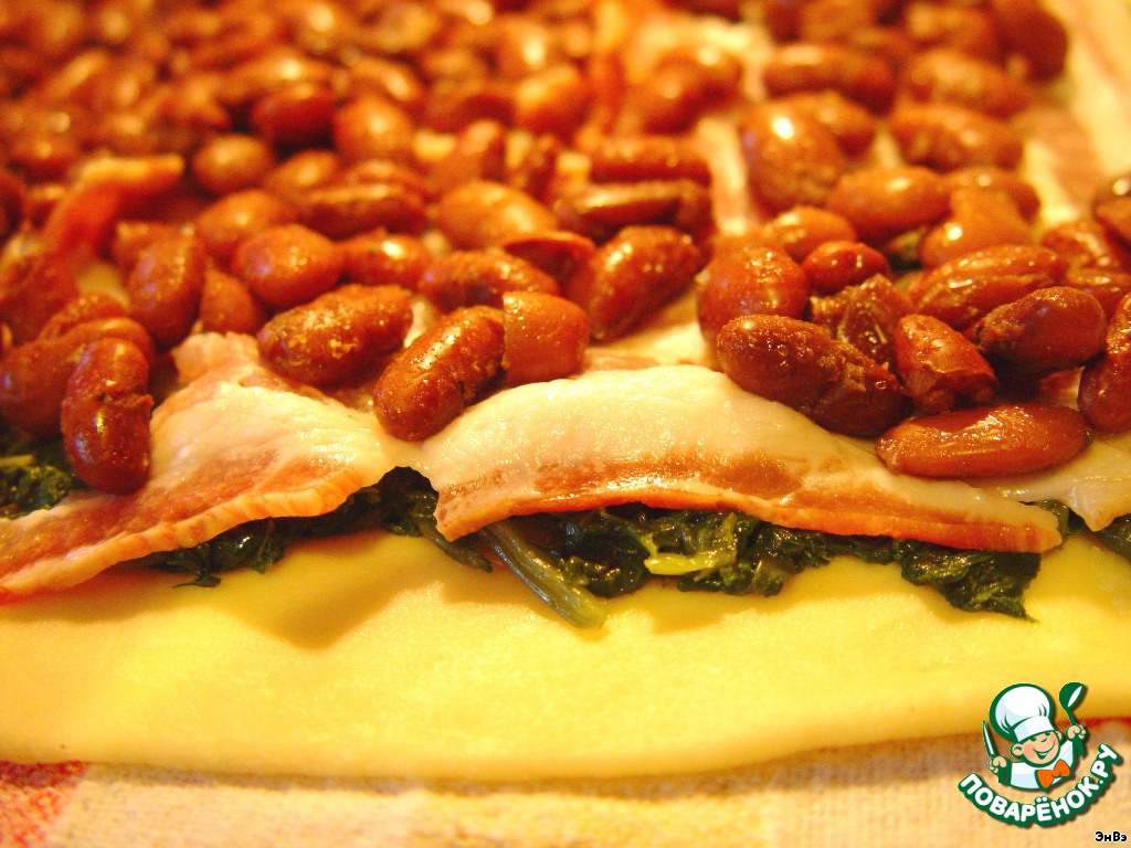 Зимний пряный штрудель с фасолью, шпинатом и беконом