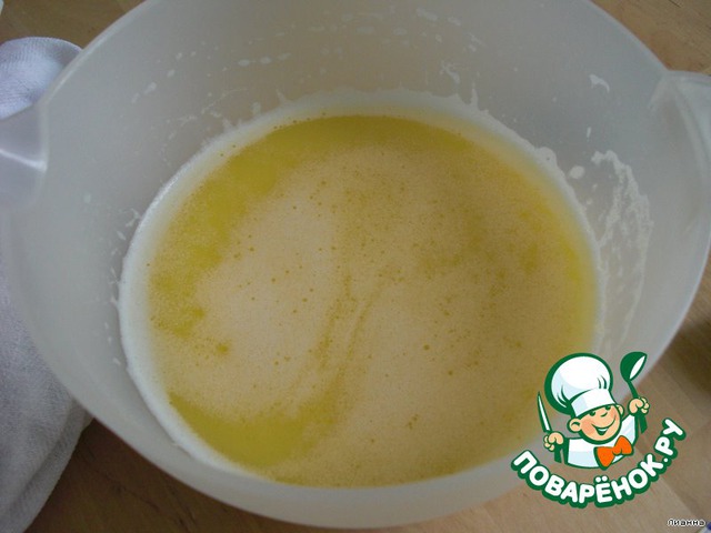В это время растопить 100 г масла в 250 мл молока (в микроволновке).