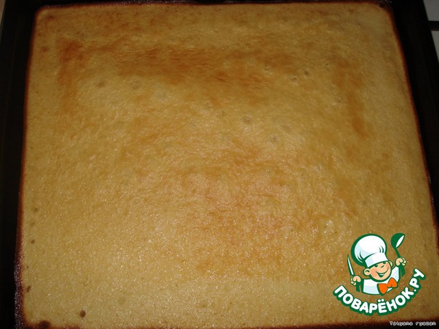 Взбить миксером. Тесто получается жидким. Перелить на противень, выпекать в предварительно разогретой до 220 градусов духовке 15 минут.