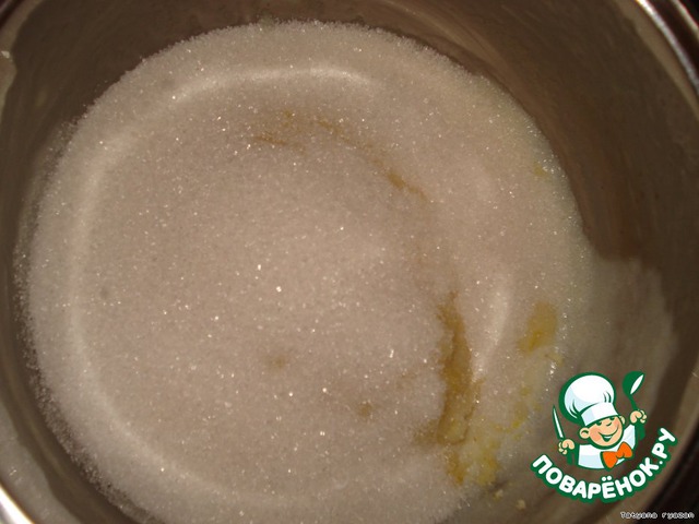 Так же добавить сахар и сливочное масло, взбить миксером.