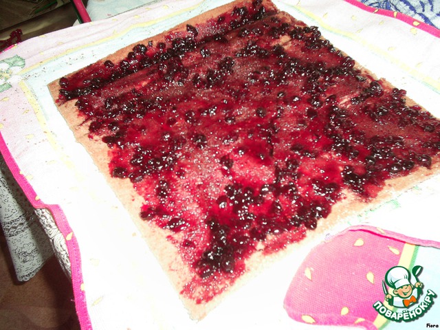Развернутый рулет смазываем вареньем.