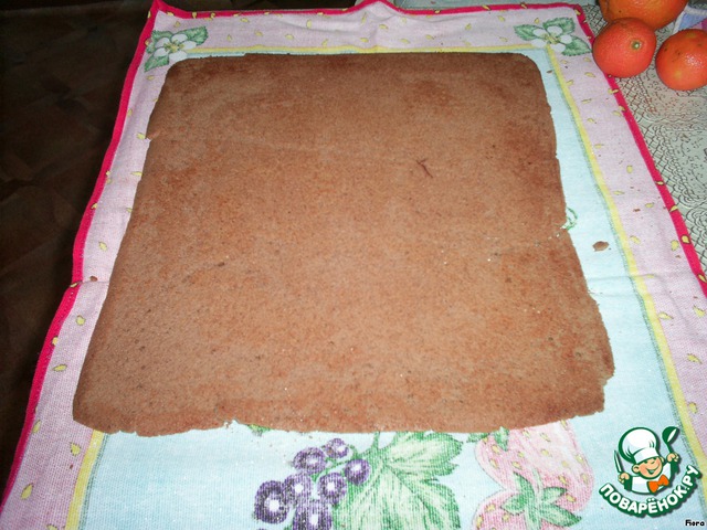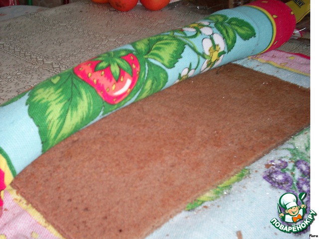 Сворачиваем рулет вместе с полотенцем, оставляем, пока не остынет.
