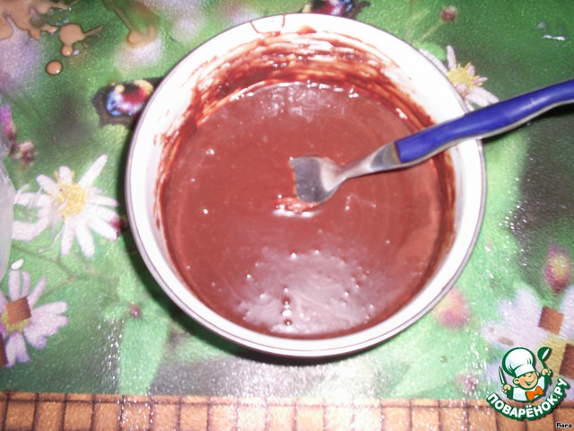 Шоколадную глазурь выливаем в полиэтиленовый мешочек, срезаем край на 2 мм.