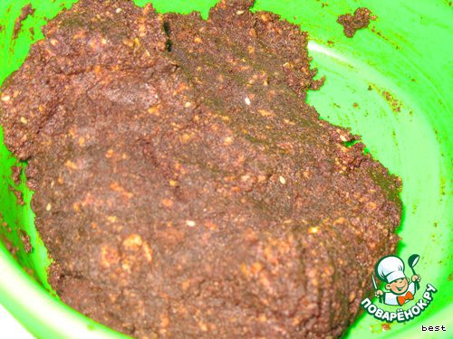 В измельченное печенье добавить сахар и какао, смешать все ингредиенты и постепенно вливать воду, до получения теста.