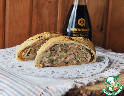 | Если вы любите рыбу, то этот рулет вам непременно понравится. Нежная, сочная, пикантная начинка в тонком тесте. К тому же пирог не отягощён калориями. Идеально подойдёт для перекуса на пикнике. |