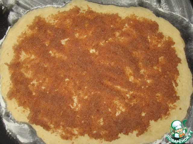 Готовим сироп из 50 гр. коричневого сахара и 50 мл воды. Пропитываем им готовую сдобу.