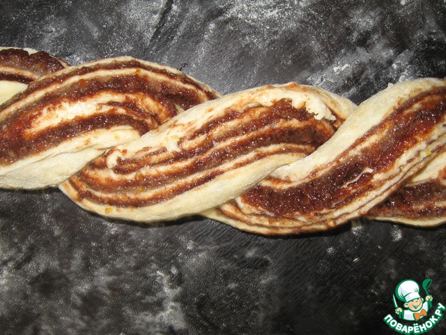 Заплести половинки теста в жгут так, чтобы "открытые" части смотрели наверх