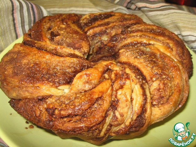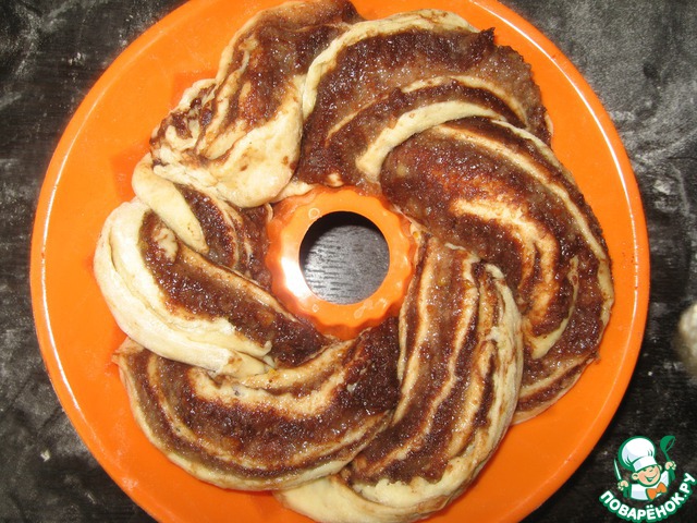 Выложить "косичку" в круглую форму для кекса и поставить в теплое место на расстойку на 40-50 мин. Выпекать 45-50 минут. Через 20 минут после начала выпечки накрыть кранч фольгой.