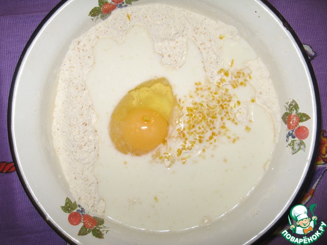 Добавить яйцо, цедру 1/4 лимона, 50 мл теплого молока и замесить тесто. В процессе постепенно ввести 50 гр. нарезанного кубиками мягкого сливочного масла.