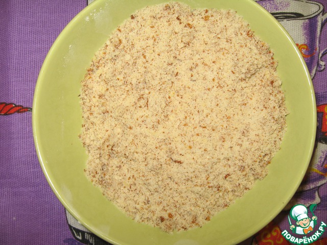 Готовим ореховую составляющую начинки (можно тоже с вечера): орехи смолоть в мелкую крошку.