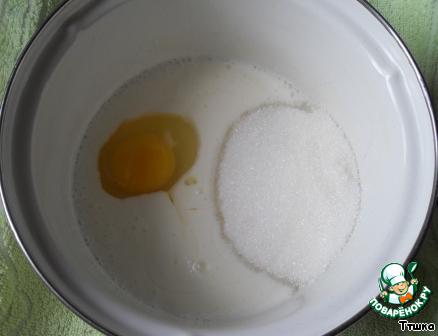 0,5 стакана кефира , 1 яйцо и 0,5 стакана сахара.