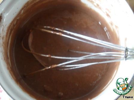 В 0,5 стакана муки добавляем 1 ст.л. крахмала, 0,5 ч.л. соды и 3 ч.л. какао-порошка, перемешиваем и добавляем смесь в кефир.