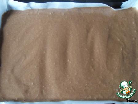 Выливаем полученное тесто на покрытую пергаментом форму.