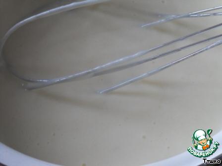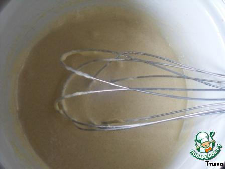 2 яичных желтка перетираем добела с 0,5 стакана сахара и добавляем 3 ст.л. муки, перемешать. Разводим небольшим количеством молока до кисельной консистенции.
