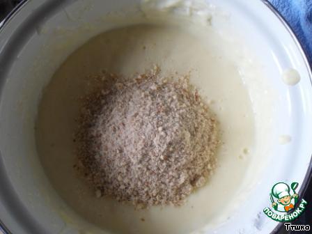 После того, как весь крем окажется в масле, добавляем 100г измельченного миндаля.
