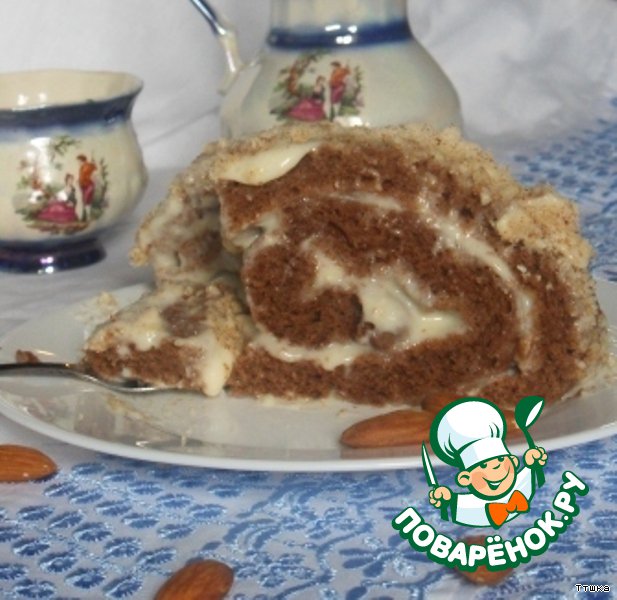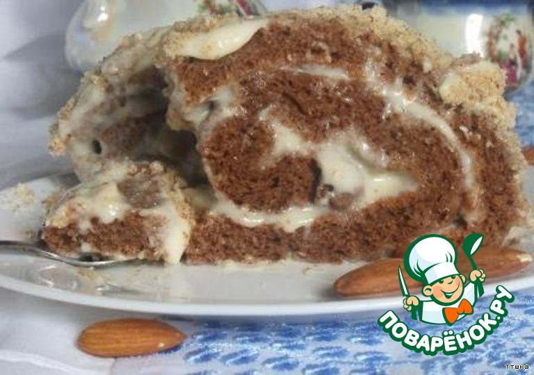Шоколадный рулет с миндальным кремом