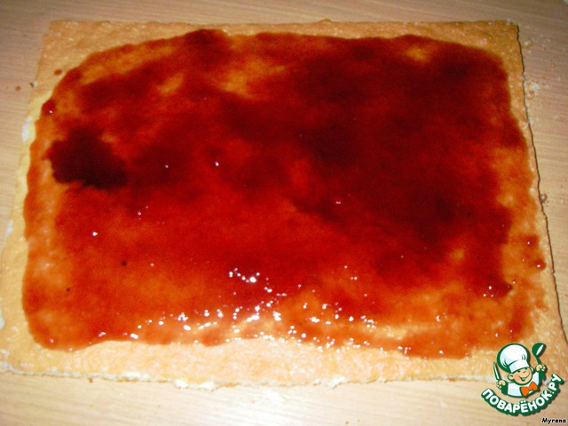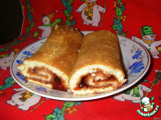 | Вот уже и середина зимы. Потихоньку можно доставать запасы с лета. В этот раз мне под руку попалась баночка черносмородинового варенья. Вот и получился рулетик! |