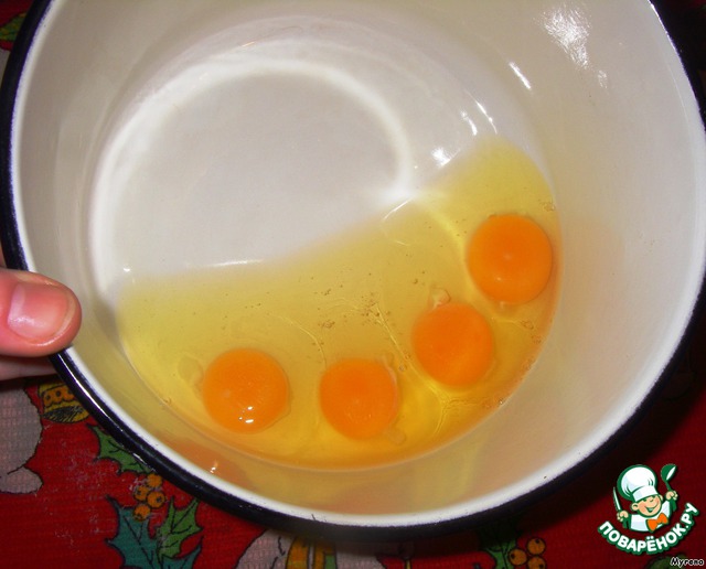 Яйца разбиваем в посуду, в которой будем делать тесто. И взбиваем их в течении 10 минут. Это очень важно, иначе тесто не будет воздушным и легким.