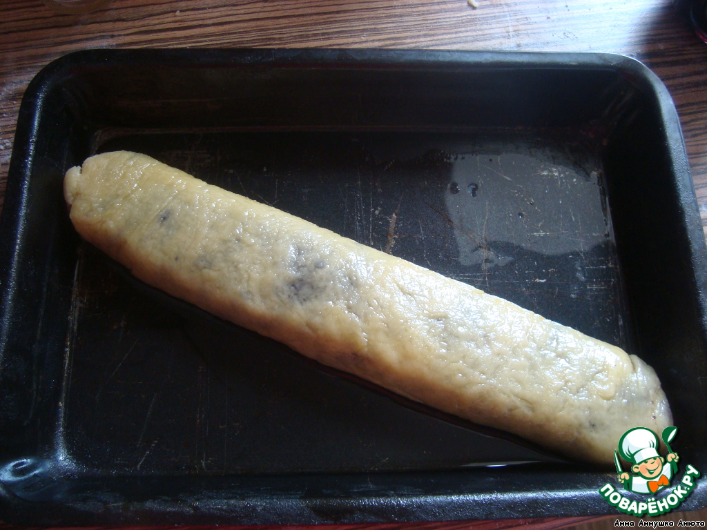 Заворачиваем, смазываем подсолнечным маслом вертуту, выкладываем в форму (форму тоже смазать).