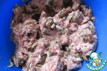 Отправляем грибы в фарш и хорошо вымешиваем.