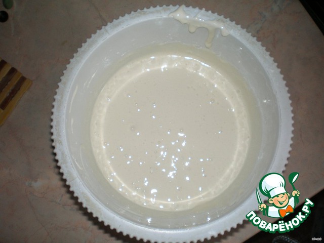 Замесить тесто из предложенных ингрeдиентов. Противень застелить пергаментной бумагой, смазать сливочным маслом. Выложить тесто и равномерно распределить.
