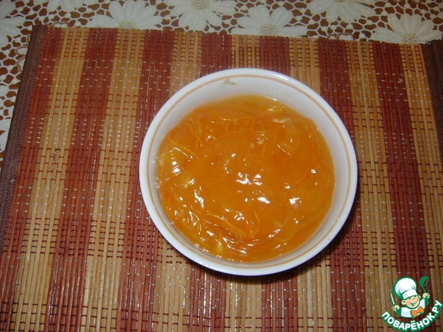 Крахмал развести в небольшом количестве воды. Тонкой струйкой влить в цитрусовый сироп, постоянно помешивая. Варить до загустения.