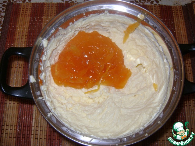 Добавить в крем охлажденный конфи.