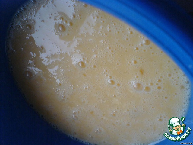 Сметану, 3 яйца и немного соли взбить.