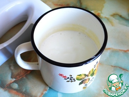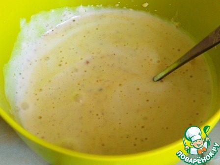 Сначала приготовим начинку. Мне очень нравится использовать в рецептах " крим-чиз" домашнего приготовления. В этот раз я его делала из замороженной 4% ряженки и 2.5% кефира. О процессе приготовления "крим-чиза" подробнее рассказано в другом рецепте: Банановый рулет с кремом из взбитых сливок и крим-чизом из ряженки. http://www.povarenok .ru/recipes/show/864 92/