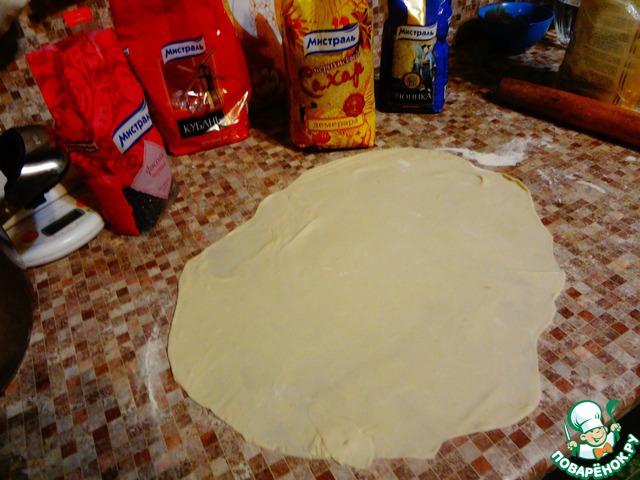 Замесить тесто, если у вас не осталось от пирожков))). Тонко раскатать его.