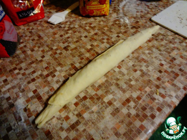 Осторожно, но постараться плотно завернуть тесто в рулет.