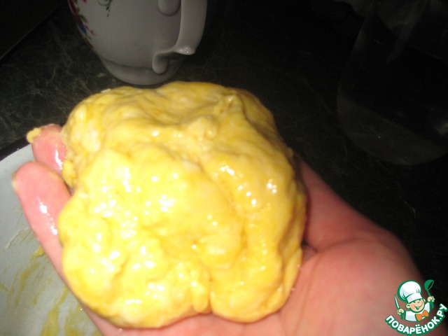 Замесите однородное тесто. Сформируйте шар, смажьте его оставшейся 1ст. л. растительного масла и поставьте, накрыв полотенцем, отдыхать на 30 мин.