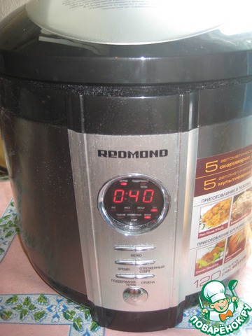 Через 40 минут низ у ретеша поджарился, а верх остался немного вареным. Я перевернула ретеш и снова включила программу "Суп" на 40 мин, с открытым клапаном