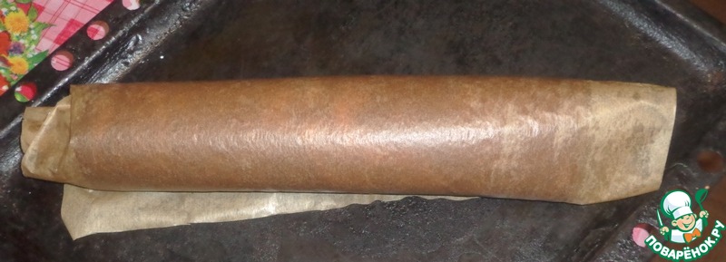 Пока горячий быстро сворачиваем вместе с бумагой. Дать остыть, затем развернуть.