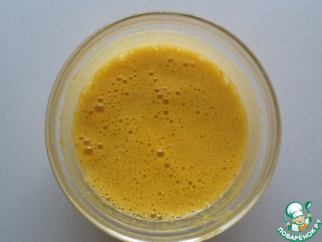 В большой миске взбейте яичные желтки на высокой скорости, постепенно добавьте 1/2 стакана сахара и тыкву, взбивайте пока сахар почти растворится.