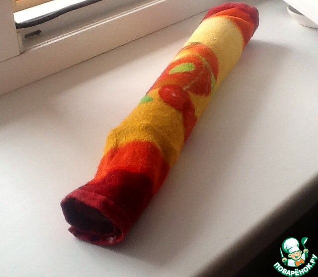 + Если вы не использовали пекарскую бумагу, обязательно присыпьте полотенце сахарной пудрой, иначе отдерете его вместе с тестом.