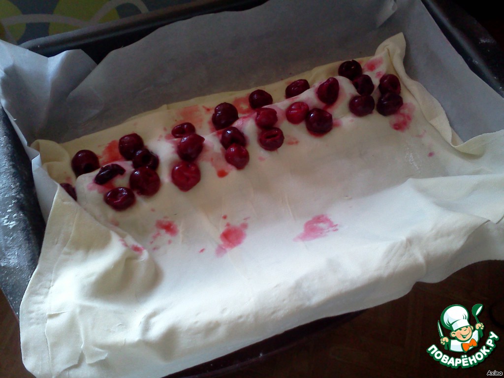 3) Смазываем оставшимся от вишни соком (или желтком), выпекаем 35 мин. при 180С.