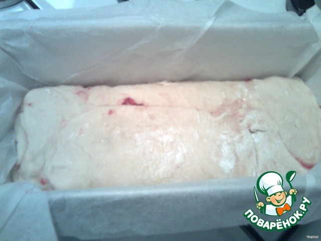 Рулет положить в выстланную бумагой для запекания прямоугольную форму длиной 30 см.
