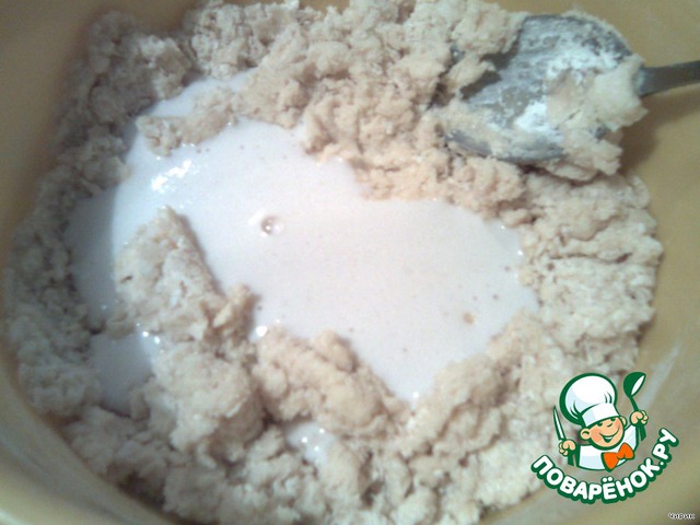 Влить молоко с дрожжами.