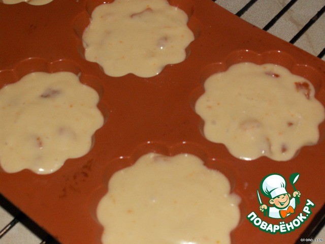 Формочки смазать растительным маслом, выложить тесто на 2 /3 части формочек.