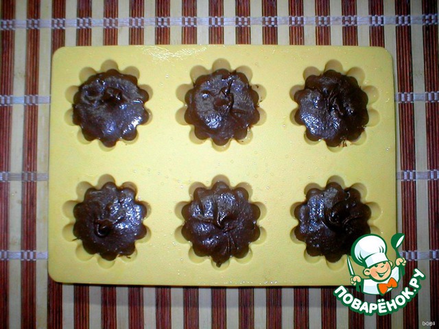 Заполнить смазанные маслом формочки для кексов ( у меня силиконовая форма, ее надо перед выпечкой просто сбрызнуть водой).