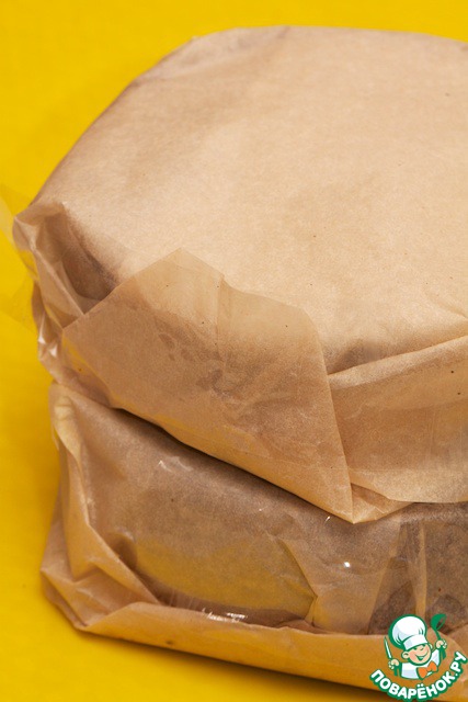 После того, как кекс остыл, достаем его из формы, оборачиваем опять в бумагу...