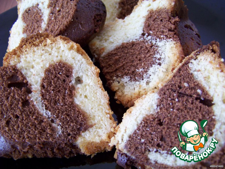 Затем выкладываем в форму по ложке светлого и темного теста, чередуя слои.