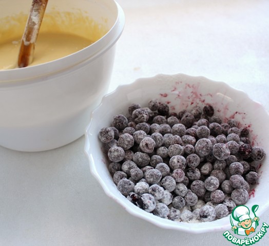 Просеять муку с разрыхлителем, соединить с массой, хорошо размешать.