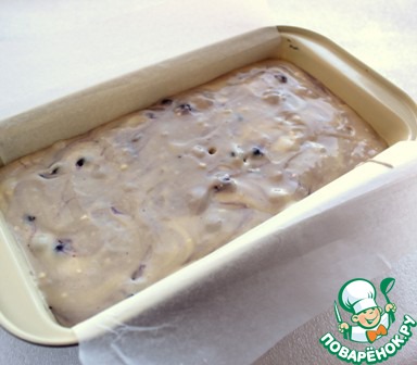 Форму смазать раст. маслом, застелить кулинарной бумагой, заполнить тестом на 2/3.